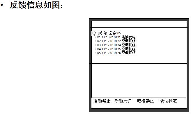 4.控制器可配置多塊手動消防啟動盤,完成對總線制外控設備的手動控制;可配置多塊14路直接控制盤,完成對消防控制系統中重要設備的控制;可擴充消防廣播控制盤和消防電話控制盤,組成消防廣播和消防電話系統;每個回路最多可同時配置4臺64點手動消防啟動盤+4臺14路直接控制盤+兩個消防廣播控制盤(或2個消防電話控制盤或1個消防廣播控制盤+1個消防電話控制盤)
